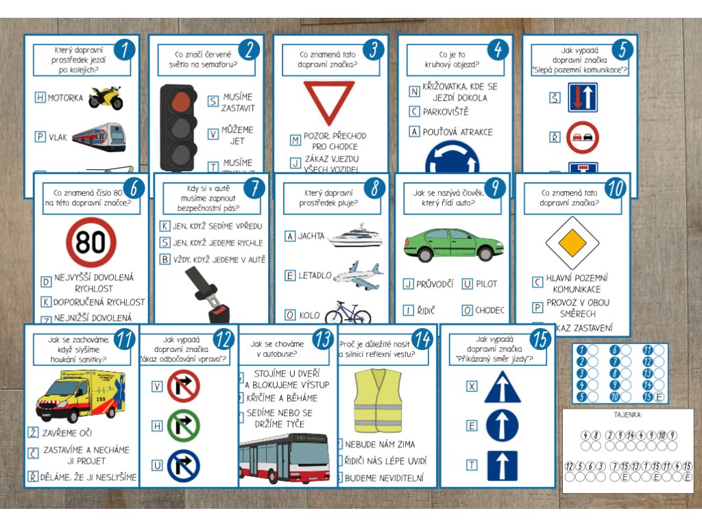 Šifrovací hra tematicky zaměřená na dopravní výchovu.