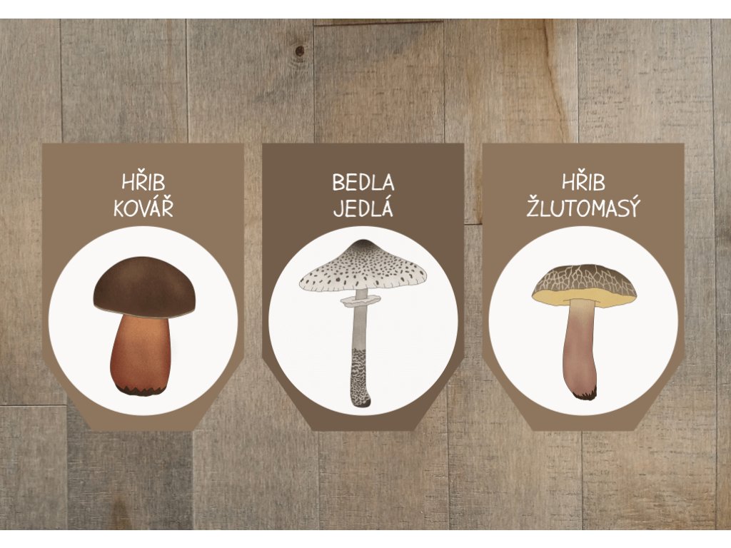 Naučná girlanda s obrázky hub rozzáří každou místnost a zároveň dětem pomůže hravou formou poznat jejich názvy.