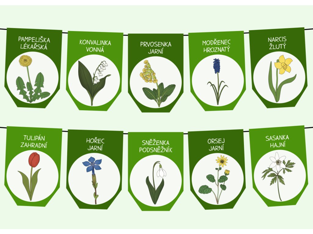 Naučná girlanda s jarními květinami rozzáří každou místnost a zároveň dětem pomůže hravou formou poznat jejich názvy.