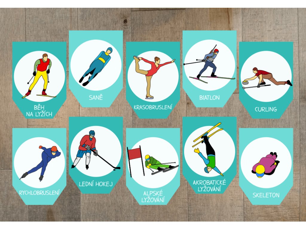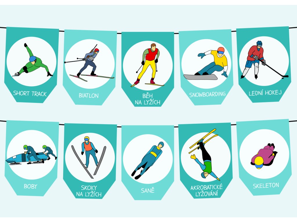 Soubor obsahuje 25 vlaječek formátu A4, na nichž najdete ilustrace zimních sportů a potřebného vybavení. Díky snadné přípravě zabere výroba jen pár minut a výsledek stojí za to.