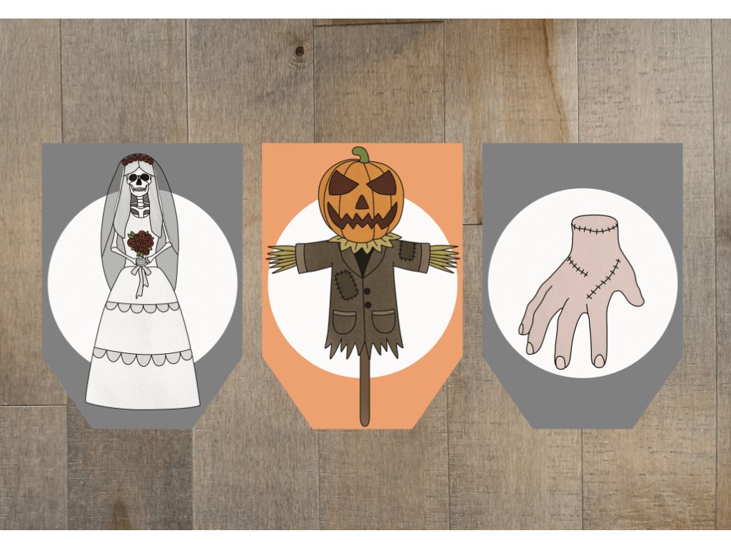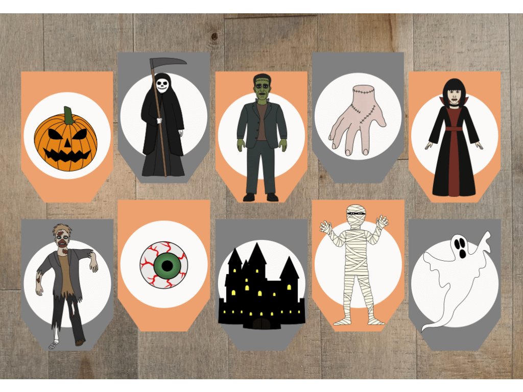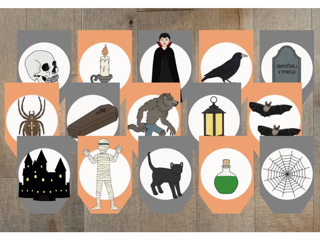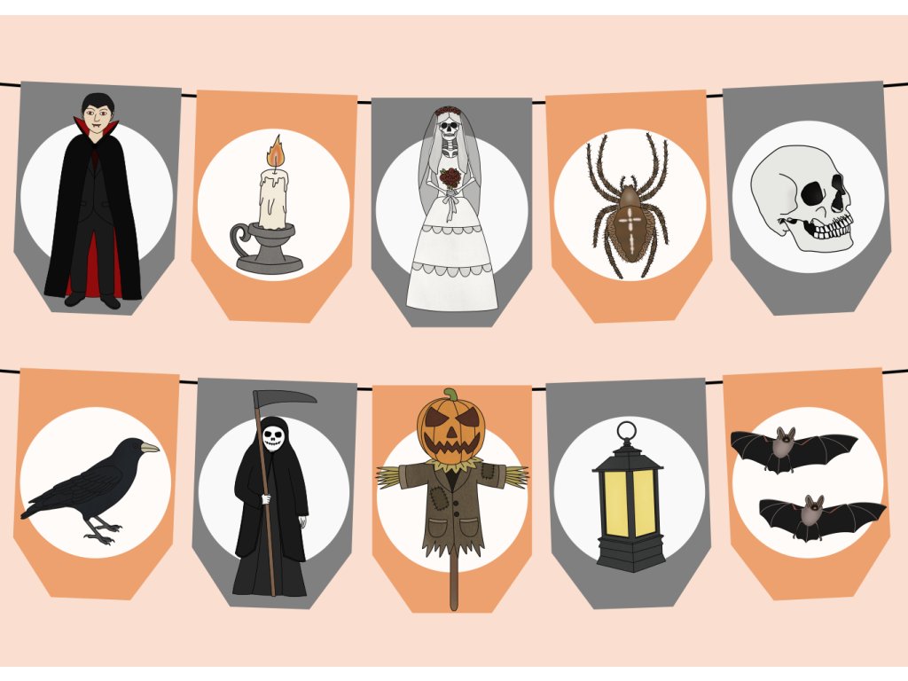 Soubor obsahuje 25 vlaječek formátu A4, na nichž najdete ilustrace spojené s Halloweenem. Díky snadné přípravě zabere výroba jen pár minut a výsledek stojí za to. Děti si obrázky rády prohlížejí a zároveň se tak nenápadně naladí na halloweenskou atmosféru.