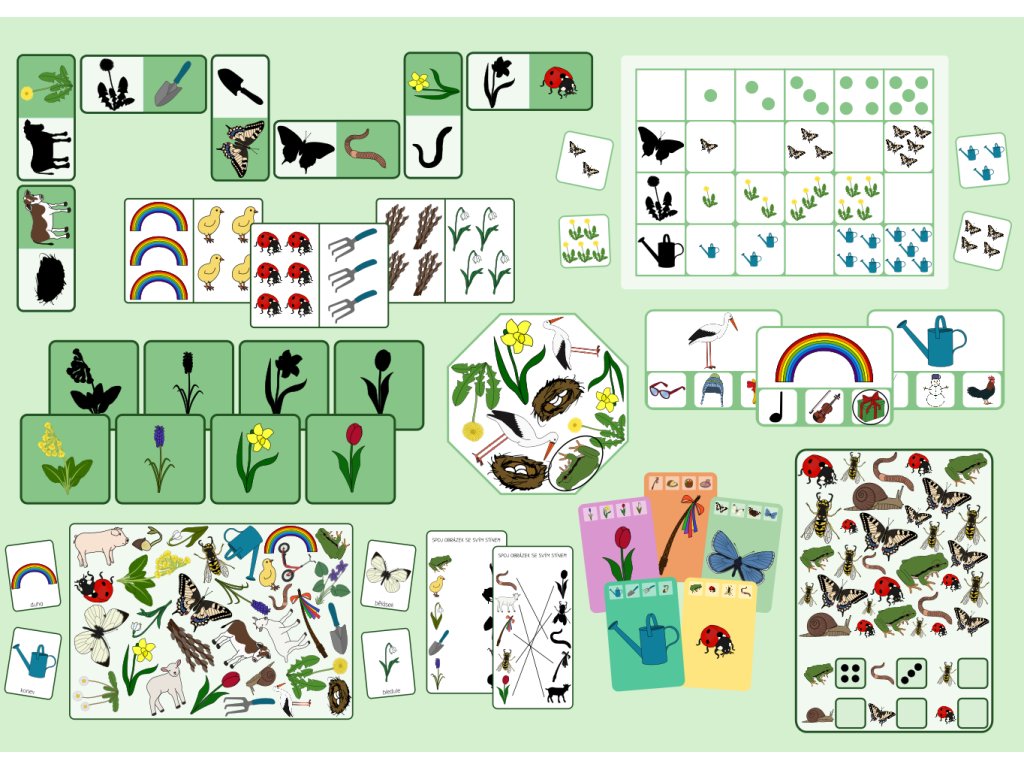 Sada 10 her a aktivit s jarní tematikou vhodná pro děti ve věku 4-6 let.