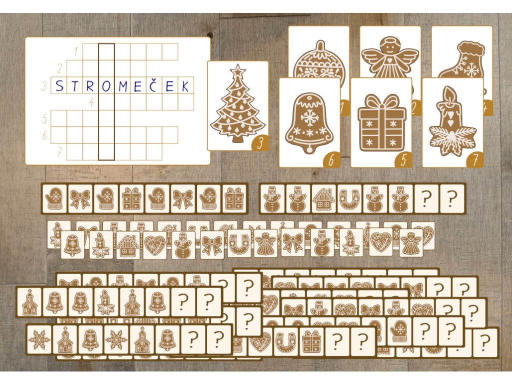 Sada 5 her a aktivit s obrázky perníčků vhodná pro děti ve věku 6-8 let.