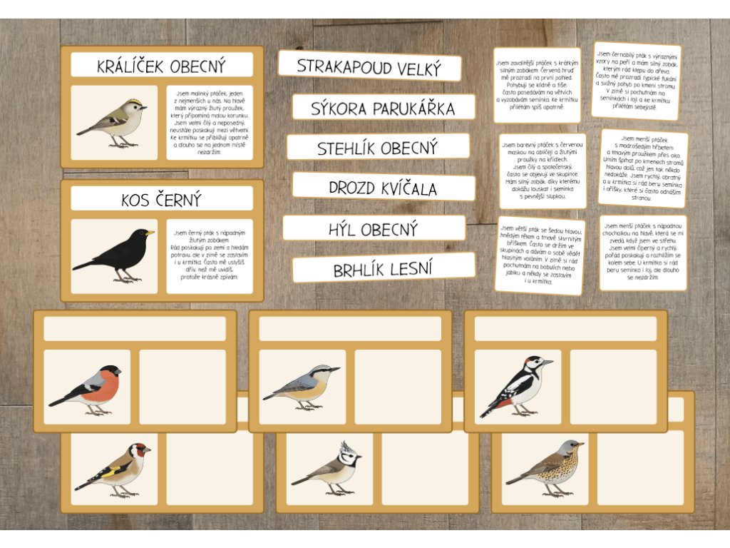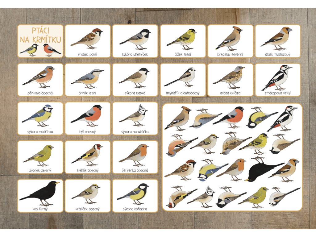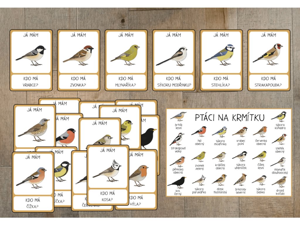 Karetní hra ideální k procvičení názvů ptáků.