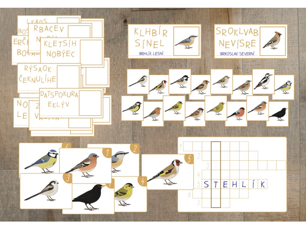 Cílem je složit z písmen název ptáka a doplnit správný obrázek.