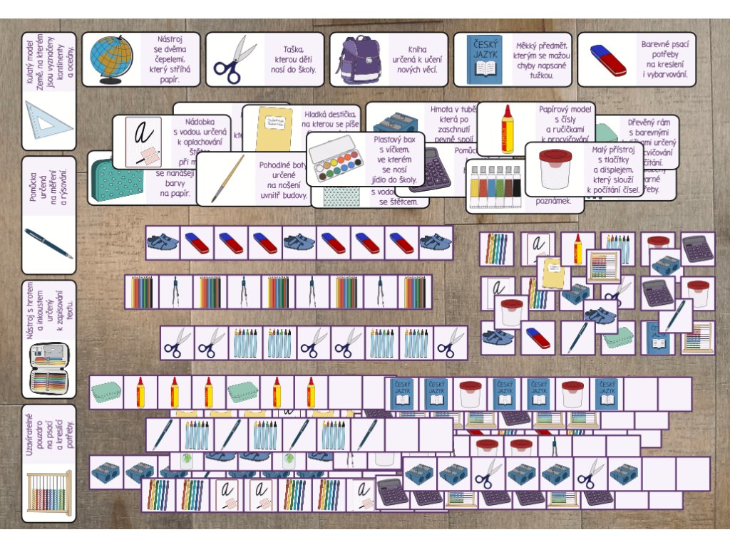 Objevte s dětmi školní pomůcky hravou formou! Tato sada aktivit pomůže dětem upevnit znalosti a rozšířit slovní zásobu, aniž by měly pocit, že se učí. Ideální způsob, jak spojit radost ze hry s praktickými dovednostmi.