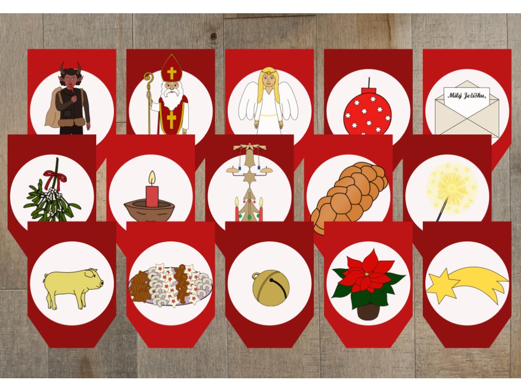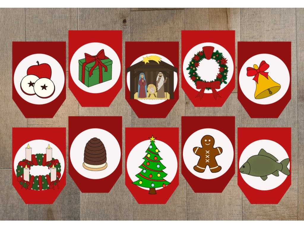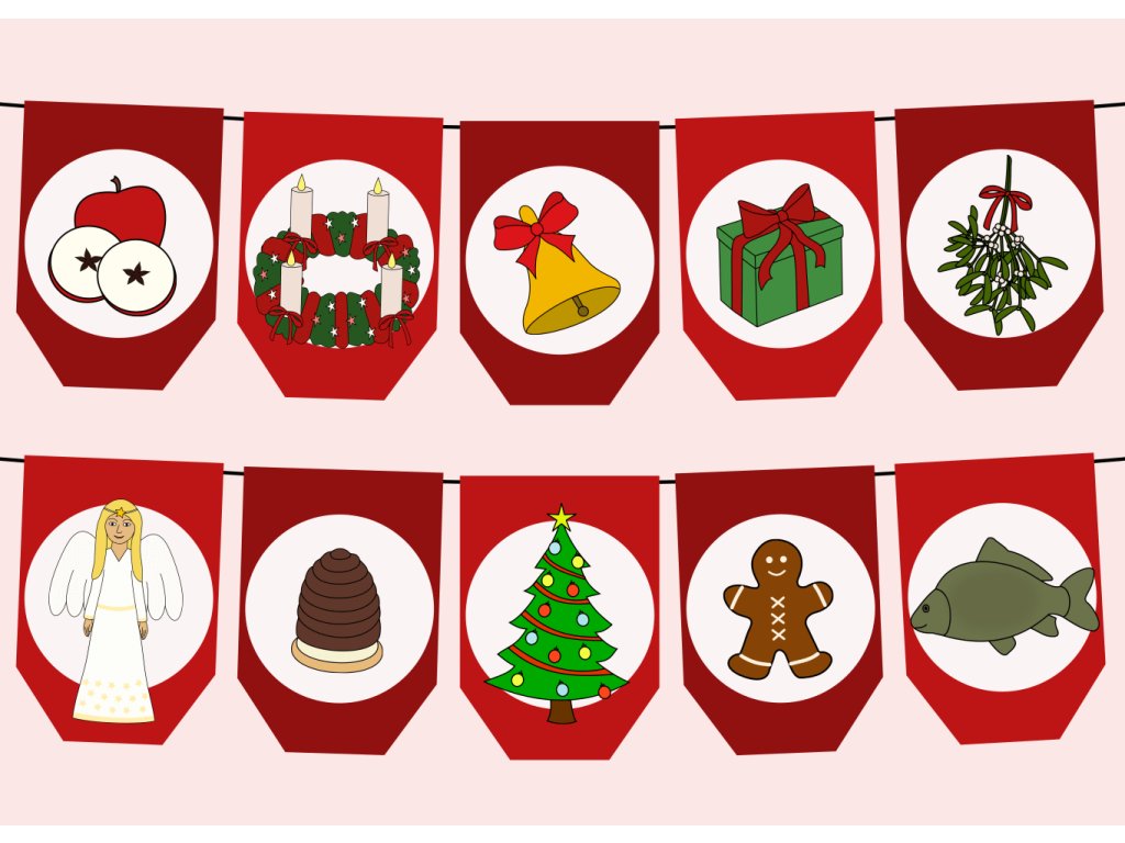 Soubor obsahuje 25 vlaječek formátu A4, na nichž najdete ilustrace spojené s vánončním obdobím. Díky snadné přípravě zabere výroba jen pár minut a výsledek stojí za to. Děti si obrázky rády prohlížejí a zároveň se tak nenápadně naladí na vánoční atmosféru.