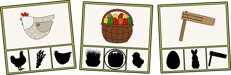 Aktivita obsahuje 12 karet. Každá karta je rozdělena na dvě poloviny. Cílem je najít obrázek, který chybí ve spodní části karty.