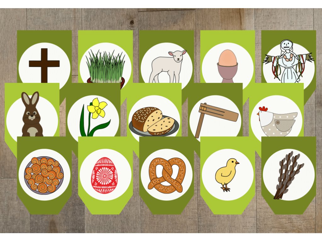 Soubor obsahuje 25 vlaječek formátu A4, na nichž najdete ilustrace spojené s velikonočním a postním obdobím. Díky snadné přípravě zabere výroba jen pár minut a výsledek stojí za to. Děti si obrázky rády prohlížejí a zároveň se tak nenápadně naladí na Velikonoce.